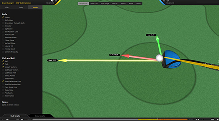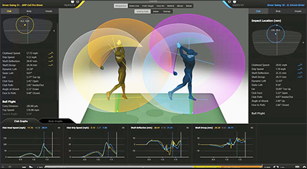 これによりアドレスからフォロースルーまでのクラブの動きとスイングフォームを3次元で計測・解析。自身のフォームの問題点をリアルタイムで確認することができるので、