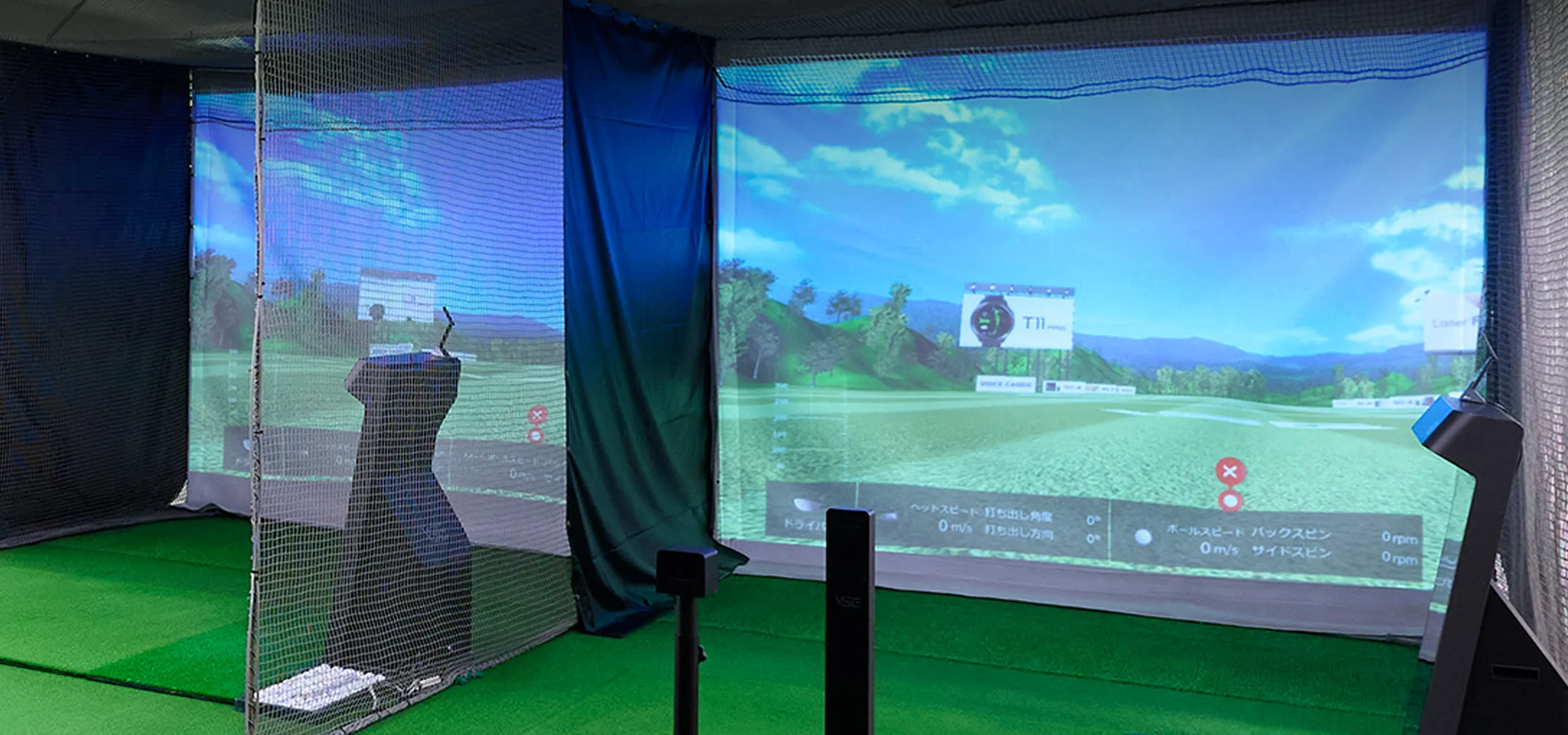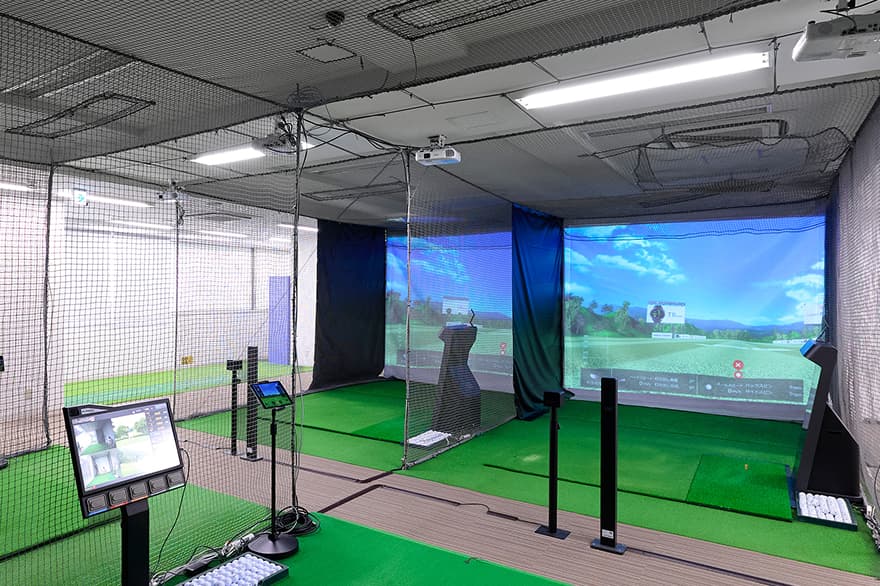 更衣室、シミュレーションゴルフ全打席、スイング解析器4打席、全5打席