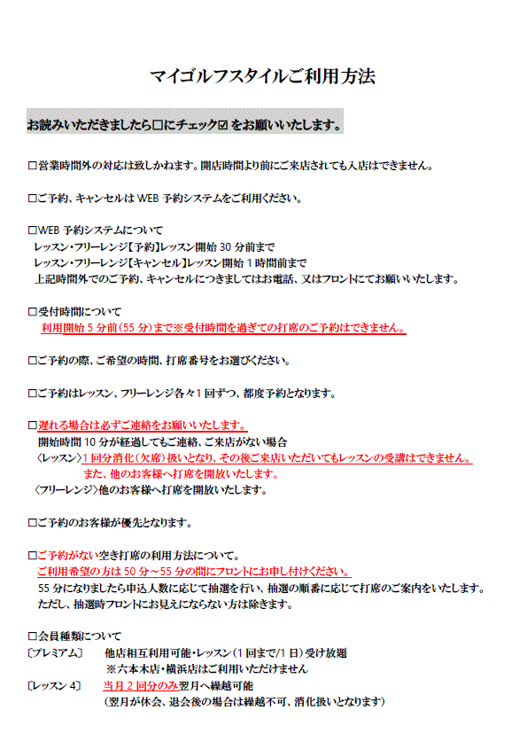 平日フリーレンジ予約枠変更に伴い、「ご利用方法」を変更致します。
