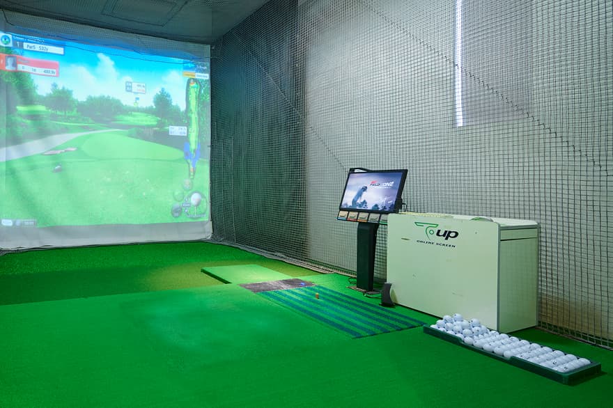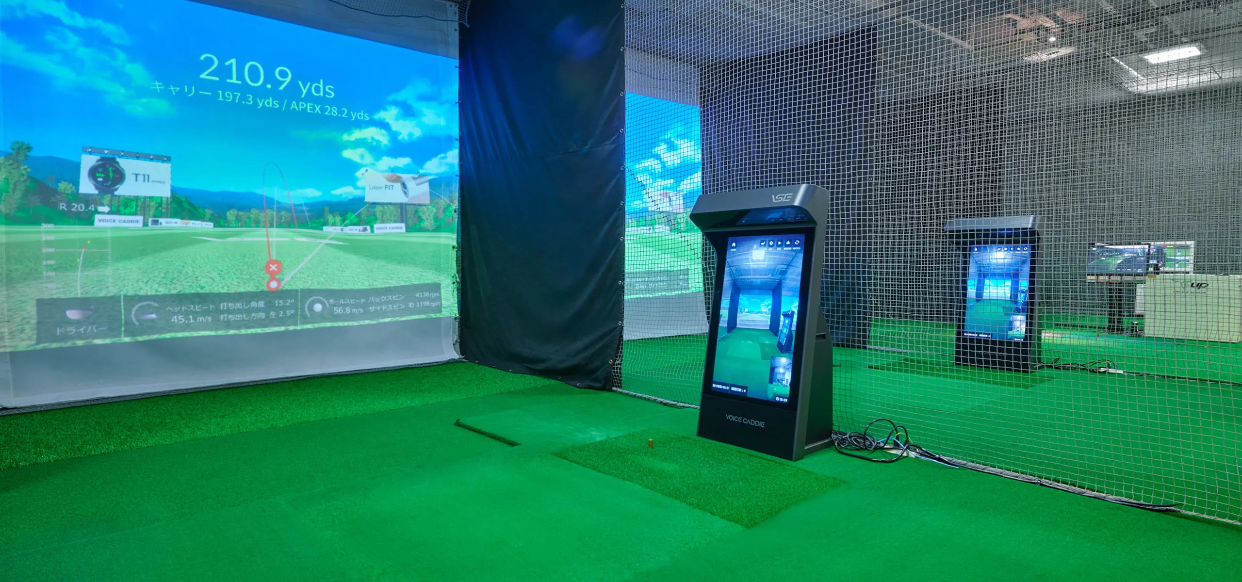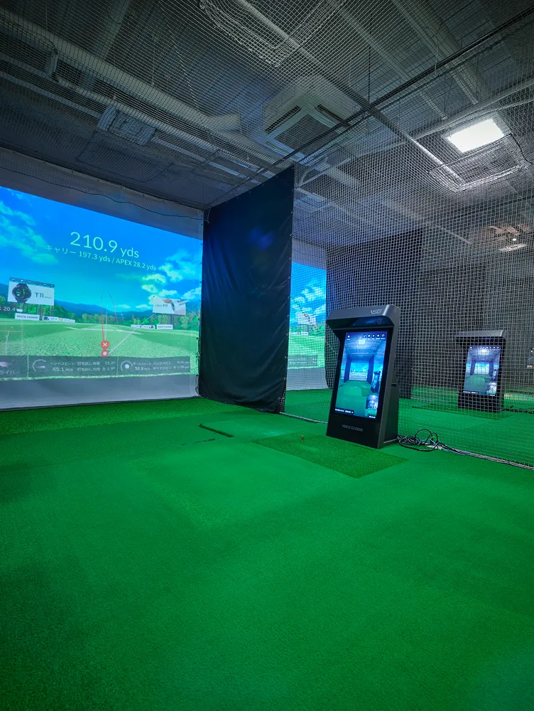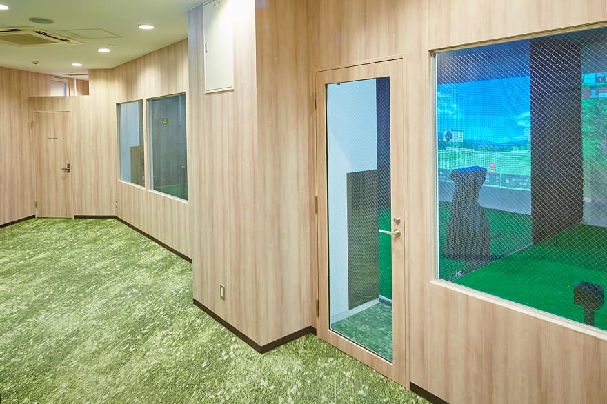 更衣室、シミュレーションゴルフ全打席、スイング解析器全打席、全6打席