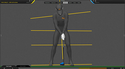 これによりアドレスからフォロースルーまでのクラブの動きとスイングフォームを3次元で計測・解析。自身のフォームの問題点をリアルタイムで確認することができるので、